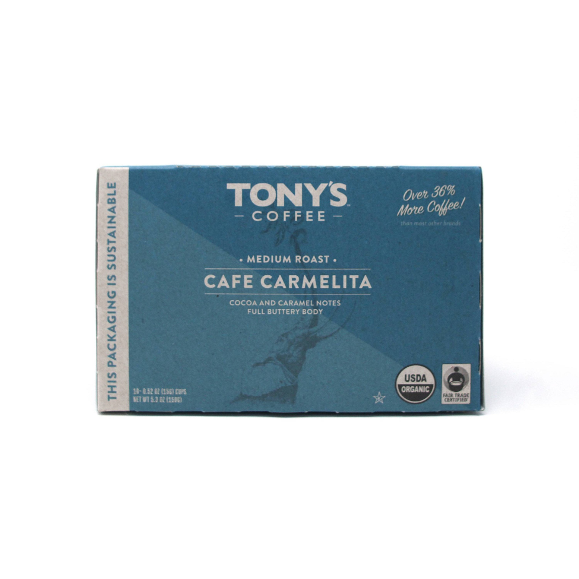 Enjoy rich, buttery flavor in convenient single serve pods with the Cafe Carmelita Medium Roast Coffee from Tony's Coffee. Crafted from organic, fair trade beans, you can feel good about sipping on th…