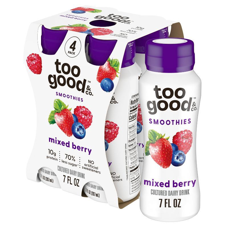 Sip on a refreshing snack that does good with Too Good & Co. Smoothie Mixed Berry Yogurt-Cultured Dairy Drink. Every lowfat smoothie bottle is made with real fruit puree and 10 grams of protein. Indul…