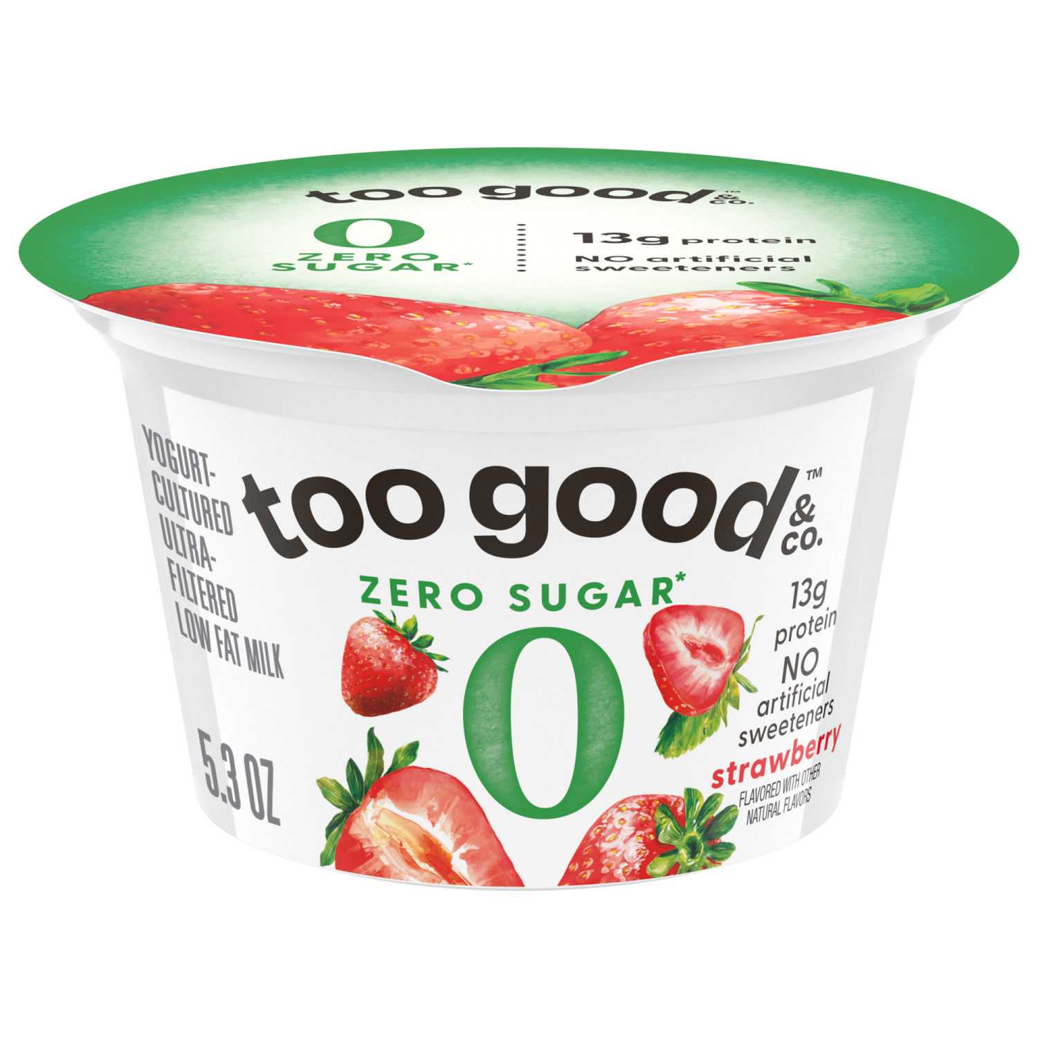 Too Good & Co. Zero Sugar Strawberry Yogurt-Cultured Ultra-Filtered Low Fat Milk Product, 5.3 OZ Cup