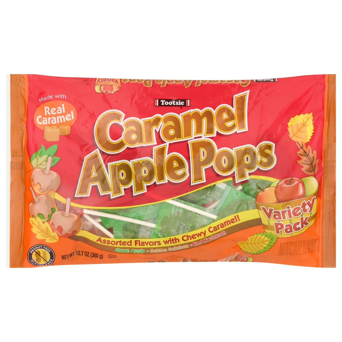 Assorted flavors with chewy caramel! Green apple. Golden delicious. Red macintosh. Made with real caramel. Product sold by weight not volume. Contents tend to settle after packaging.