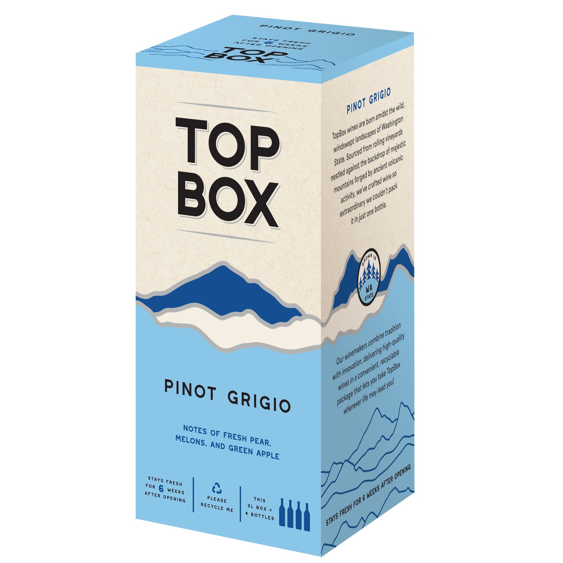 Delight in the authentic charm of Washington with TopBox Pinot Grigio, a white wine that encapsulates the state's storied winemaking tradition. At its core, our Pinot Grigio celebrates the allure of f…