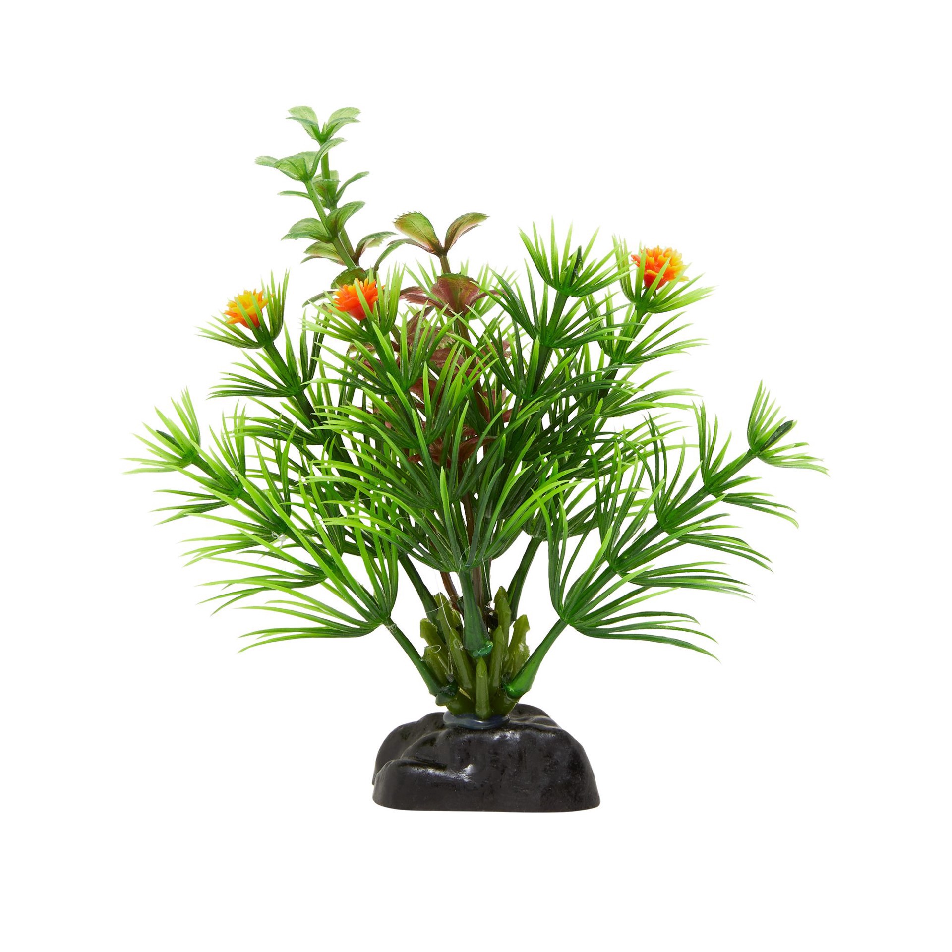 Top Fin® Artificial Mini Green & Orange Leaf With Flowers Aquarium Plant - 4"