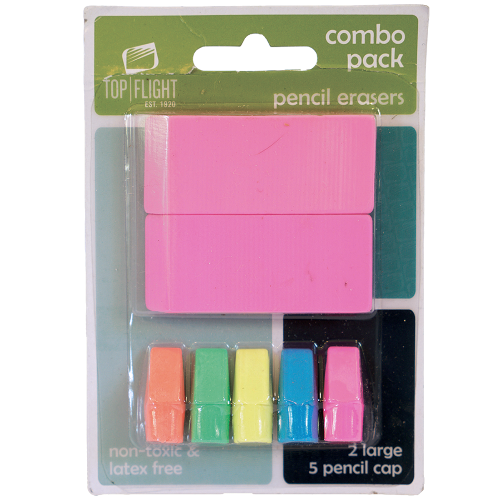 slide 1 of 1, Top Flight Pencil Eraser Combo Pack, 7 ct