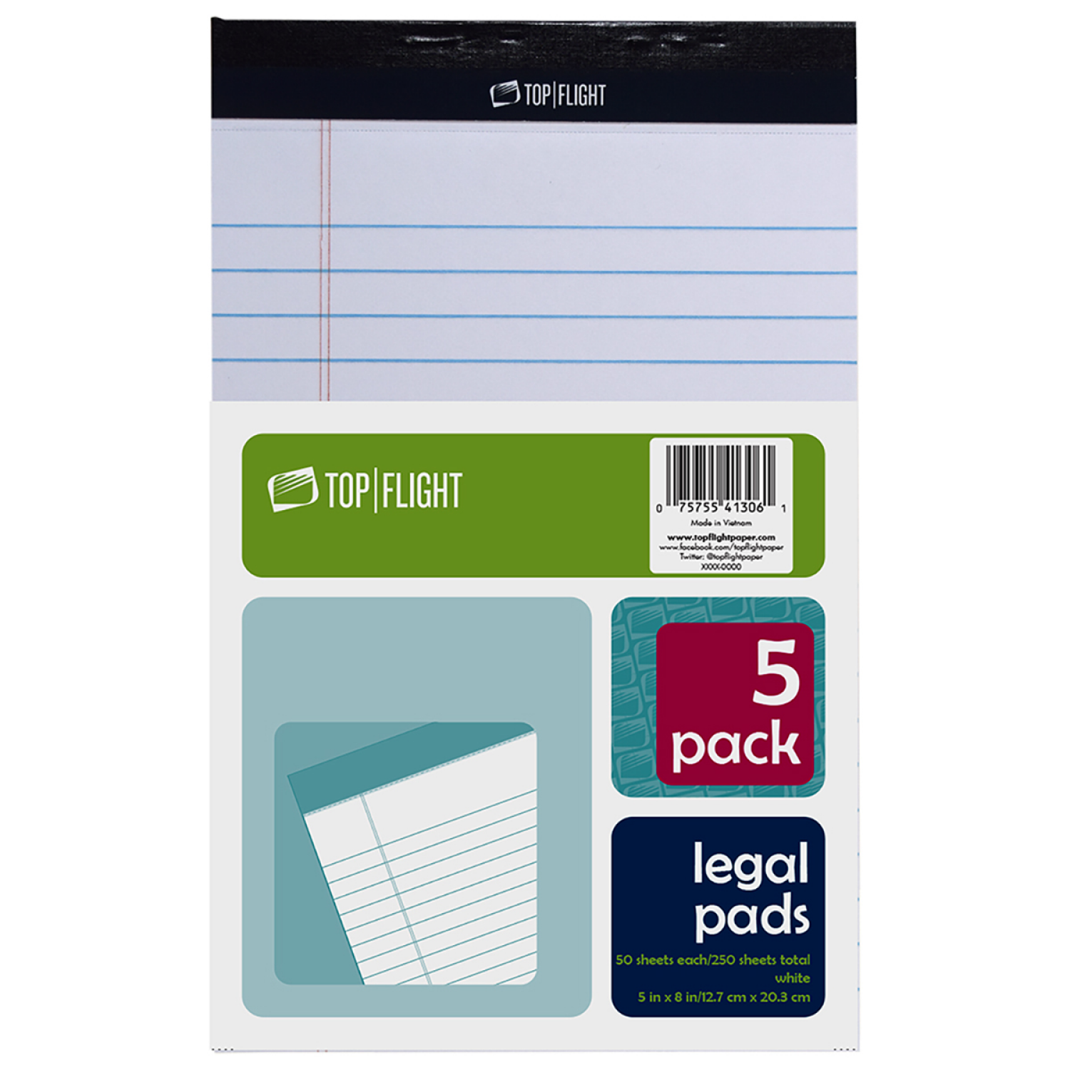 slide 1 of 1, Top Flight White Legal Pads, 5 ct
