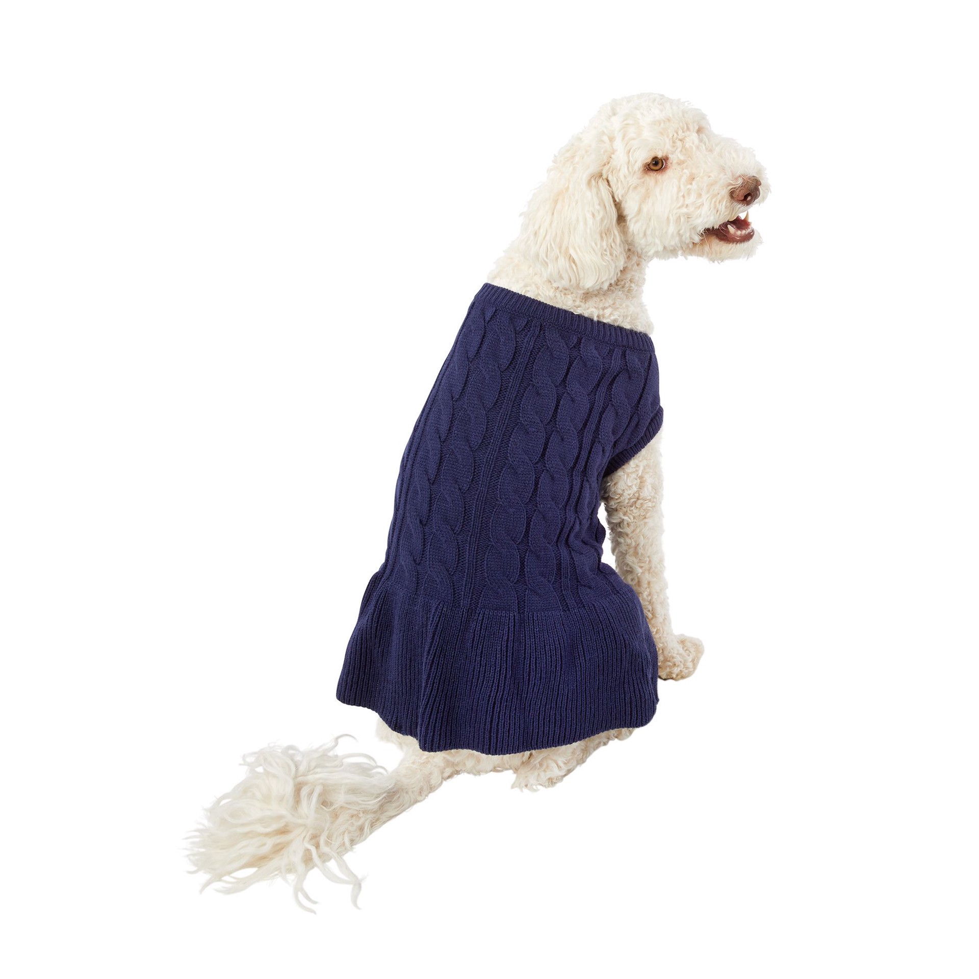 Top Paw Back-To-School Navy Cable Knit Sweater Dog Dress