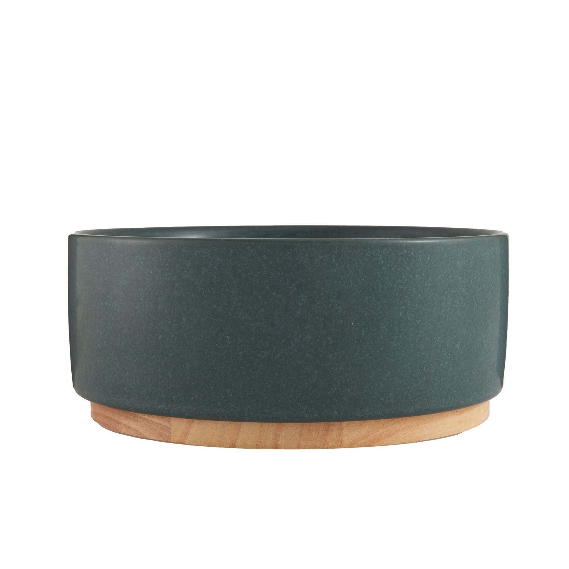 Top Paw Green with Wood Bottom Ceramic Dog Bowl
