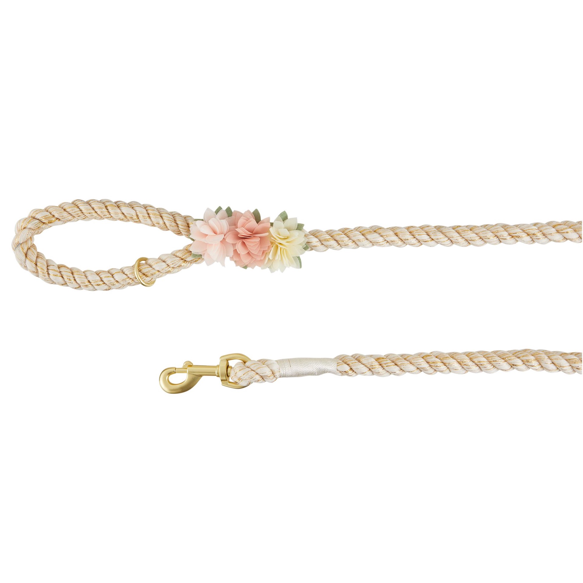 Top Paw Pink Flower Rope Dog Leash: 4-ft long
