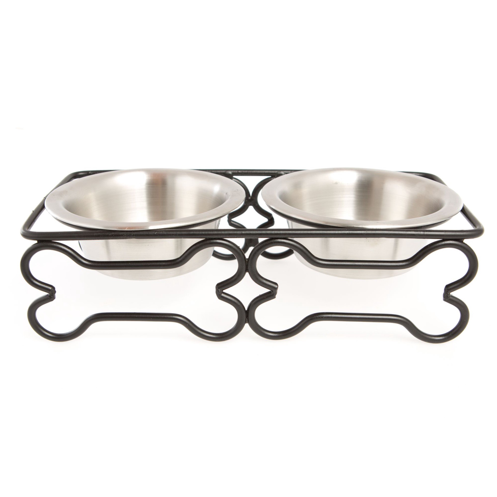 Top Paw Steel Bone Elevated Double Diner Dog Bowls