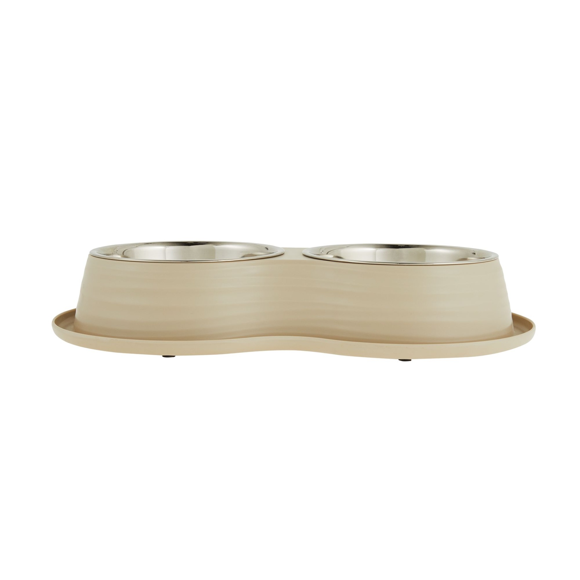 Top Paw Tan Melamine & Stainless Steel Double Diner Dog Bowl