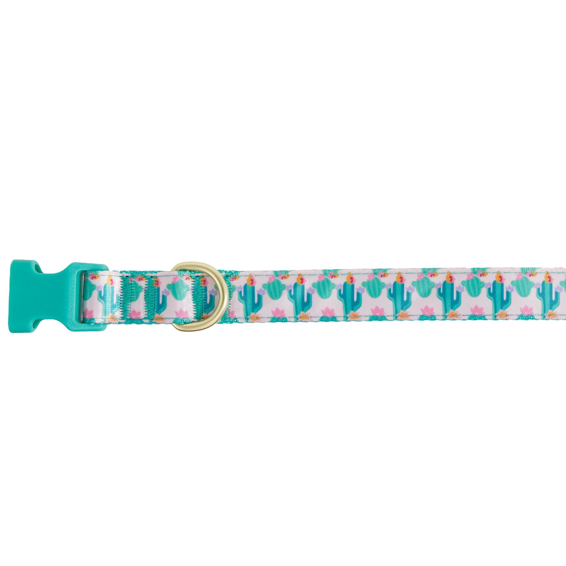 slide 1 of 1, Top Paw Teal & Pink Cactus Dog Collar, SM