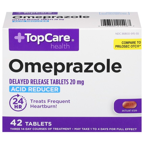 In Each Tablet: Active Ingredients: Omeprazole (20 mg), Acid Reducer. Inactive Ingredients: Carnauba Wax, Ferric Oxide Red, Ferric Oxide Yellow, Hypromellose, Hypromellose Acetate Succinate, Lactose M…