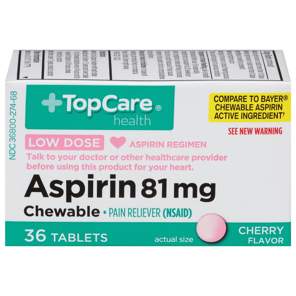 In Each Chewable Tablet: Active Ingredients: *Aspirin (NSAID) (81 mg), Pain Reliever. Inactive Ingredients: Corn Starch, D&C Red 27 Aluminum Lake, Dextrose Excipient, FD&C Red 40 Aluminum Lake, Flavor…
