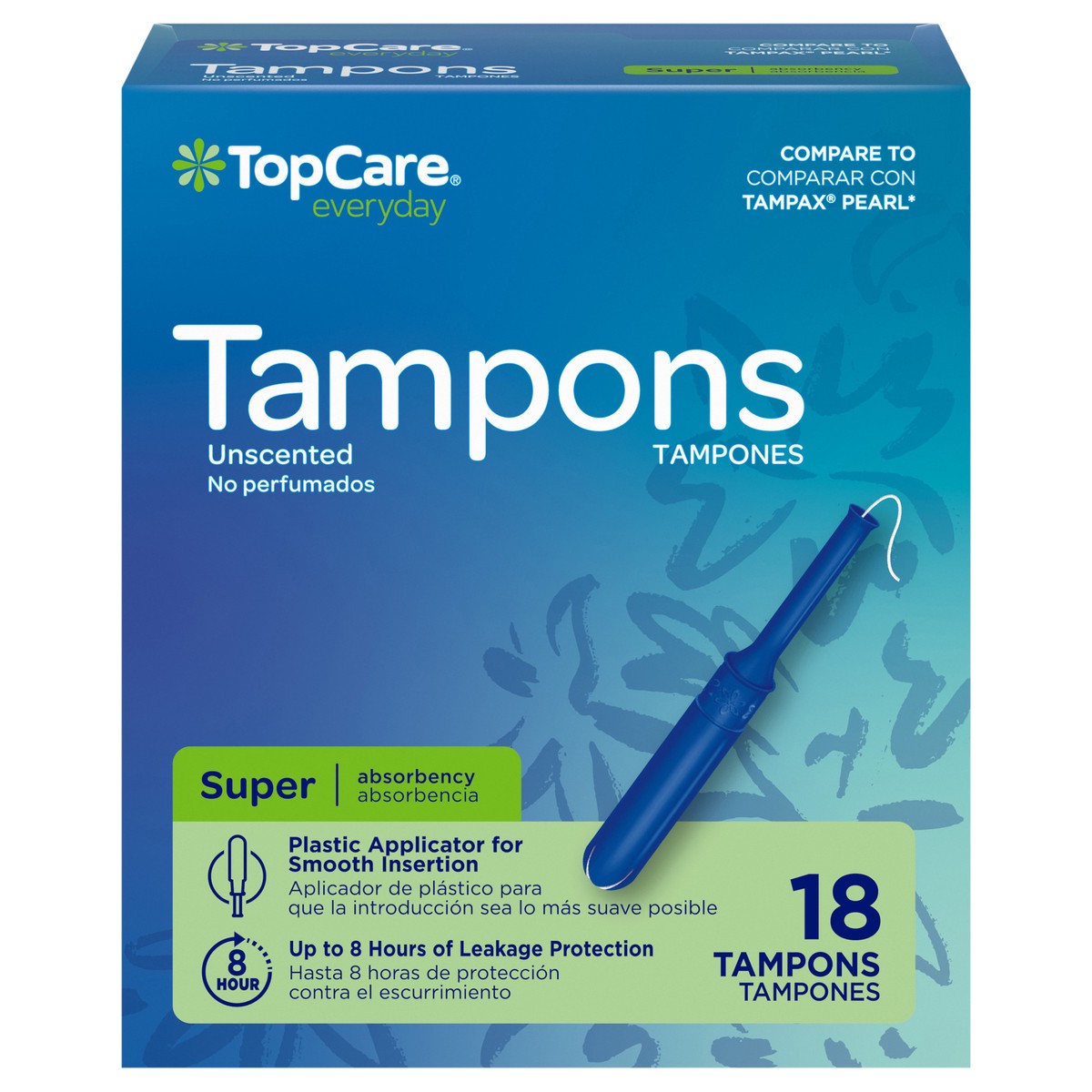 TopCare Everyday Plastic Applicator Super Unscented Tampons 18 Each
