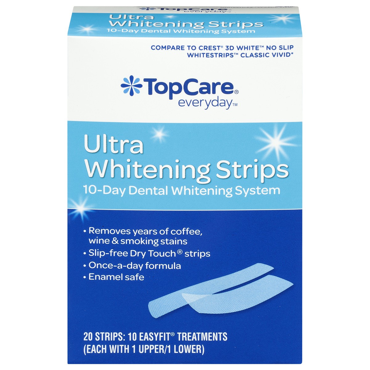 20 Strips: 10 Easy-Fit treatments (Each with 1 upper/1 lower). 10-day dental whitening system. Removes years of tough coffee, wine & smoking stains. Slip-free Dry Touch strips. Once-a-day formula. Ena…
