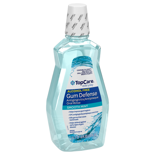 slide 1 of 1, Topcare Gum Defense Oral Rinse, Antigingivitis/Antiplaque, Alcohol Free, Smooth Mint, 33.8 fl oz