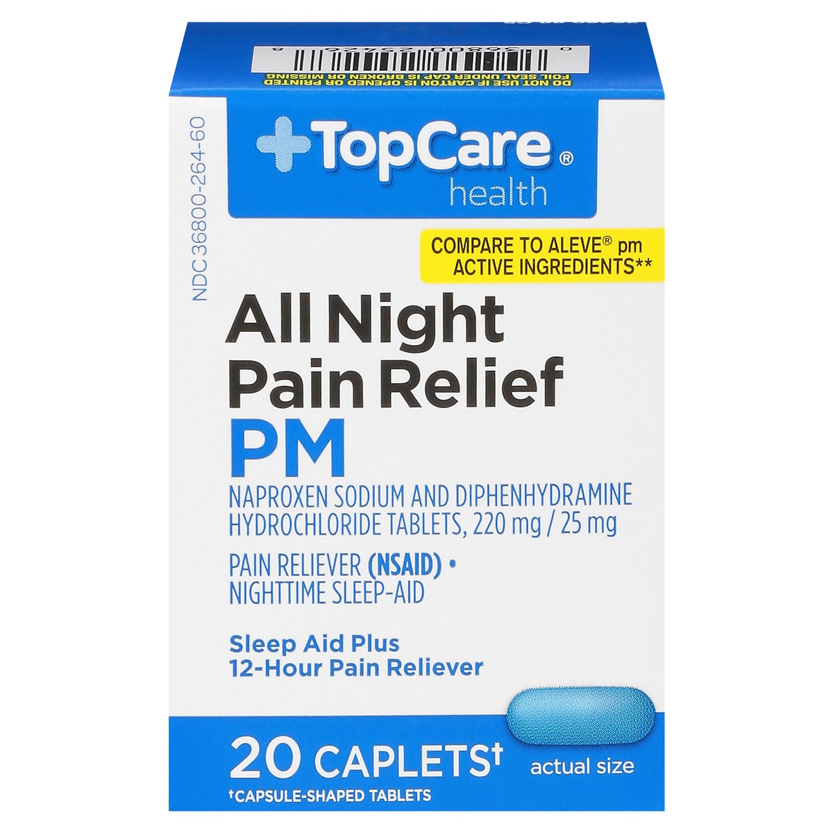 In Each Caplet: Active Ingredients: Diphenhydramine Hydrochloride (25 mg), Nighttime Sleep-Aid; *Naproxen Sodium (Naproxen 200 mg) (NSAID) (220 mg), Pain Reliever. Inactive Ingredients: Croscarmellose…