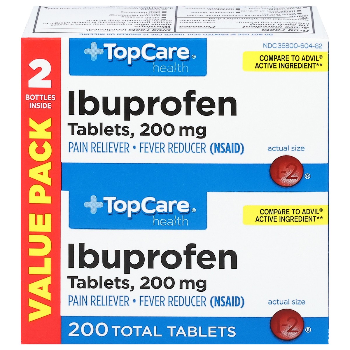 In Each Tablet: Active Ingredients: *Ibuprofen (NSAID) (200 mg), Pain Reliever/Fever Reducer. In Each Tablet: Inactive Ingredients: Colloidal Silicon Dioxide, Corn Starch, Croscarmellose Sodium, Hypro…