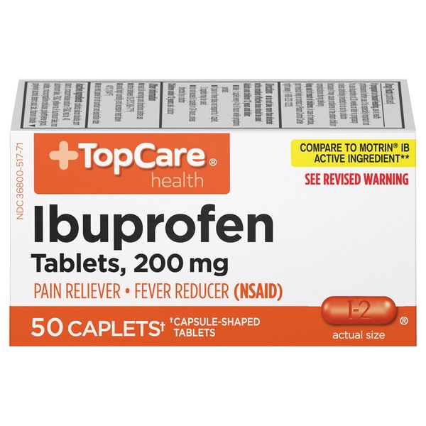 In Each Caplet: Active Ingredients: *Ibuprofen (NSAID) (200 mg), Pain Reliever/Fever Reducer. Inactive Ingredients: Colloidal Silicon Dioxide, Corn Starch, Croscarmellose Sodium, FD&C Red 40 Aluminum …