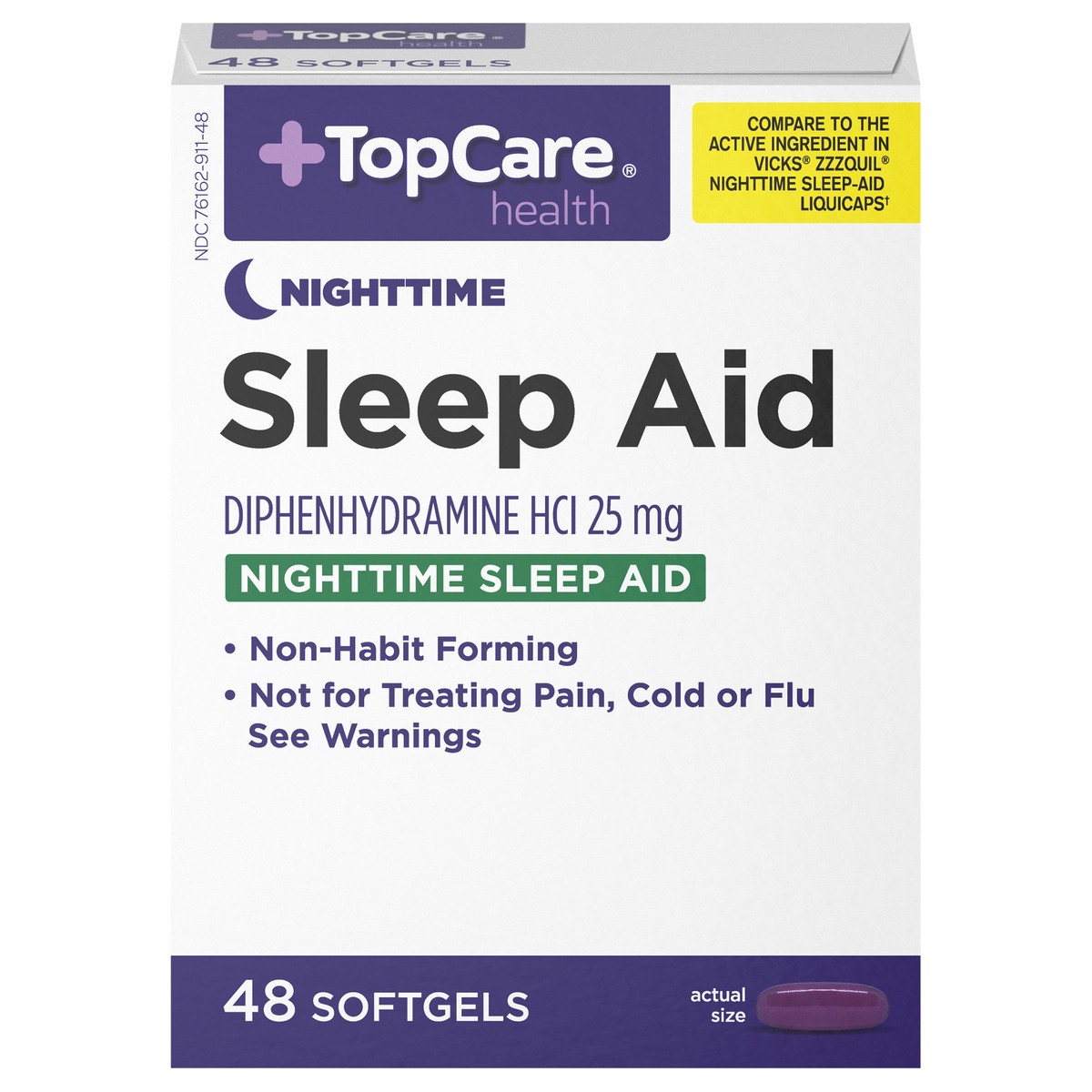 In Each Softgel: Active Ingredients: Diphenhydramine HCl (25 mg), Nighttime Sleep-Aid. Inactive Ingredients: Edible Ink, FD&C Blue 1, FD&C Red 40, Gelatin, Glycerin, Polyethylene Glycol, Purified Wate…