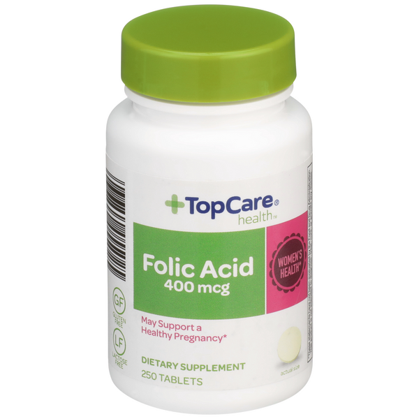slide 1 of 1, TopCare Topcare Folic Acid 400 Mcg May Support A Healthy Pregnancy Dietary Supplement Tablets, 250 ct
