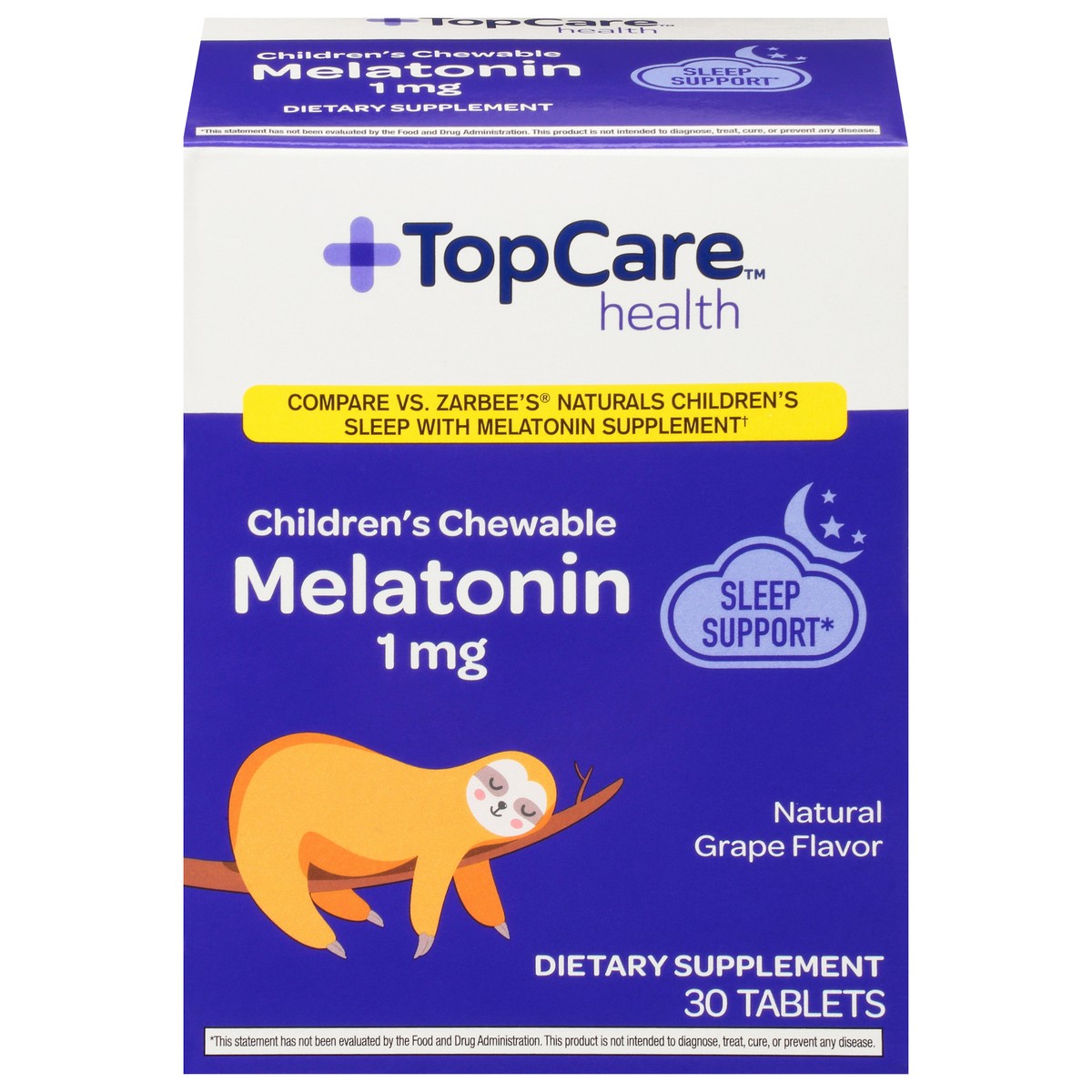 Compare vs. Zarbee's Natural Children's Sleep with Melatonin Supplement (Zarbee's is a registered trademark of Zarbee's, Inc. Corporation). Sleep support. Tablet color may vary.