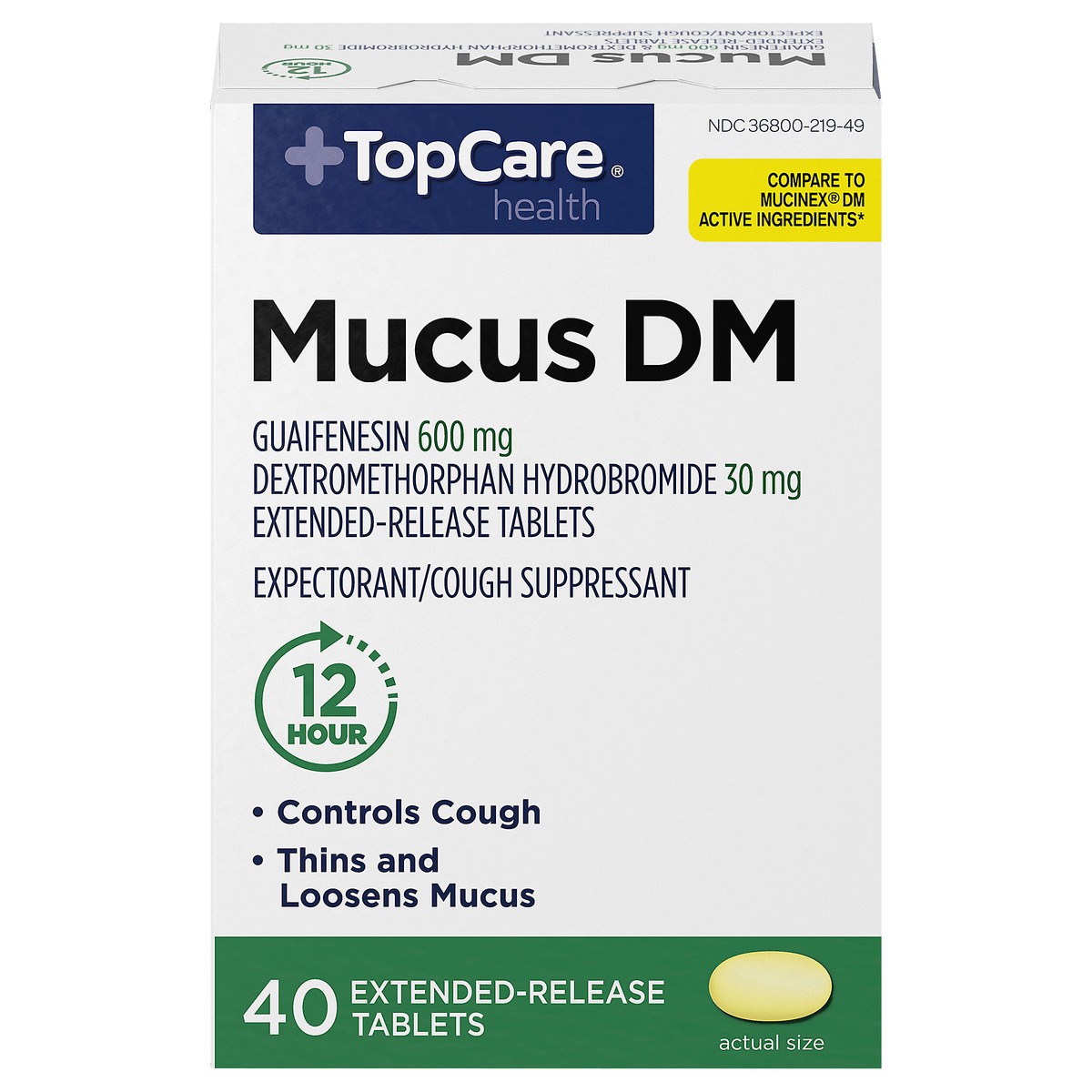 Guaifenesin 600 mg. Dextromethorphan hydrobromide 30 mg extended-release tablets. Expectorant/cough suppressant. Gluten free. Compare to Mucinex DM active ingredients (This product is not manufactured…
