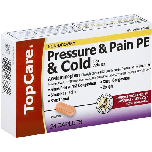 In Each Caplet: Active Ingredients: Acetaminophen (325 mg), Pain Reliever/Fever Reducer; Dextromethorphan HBr (10 mg), Cough Suppressant; Guaifenesin (100 mg), Expectorant; Phenylephrine HCl (5 mg), N…