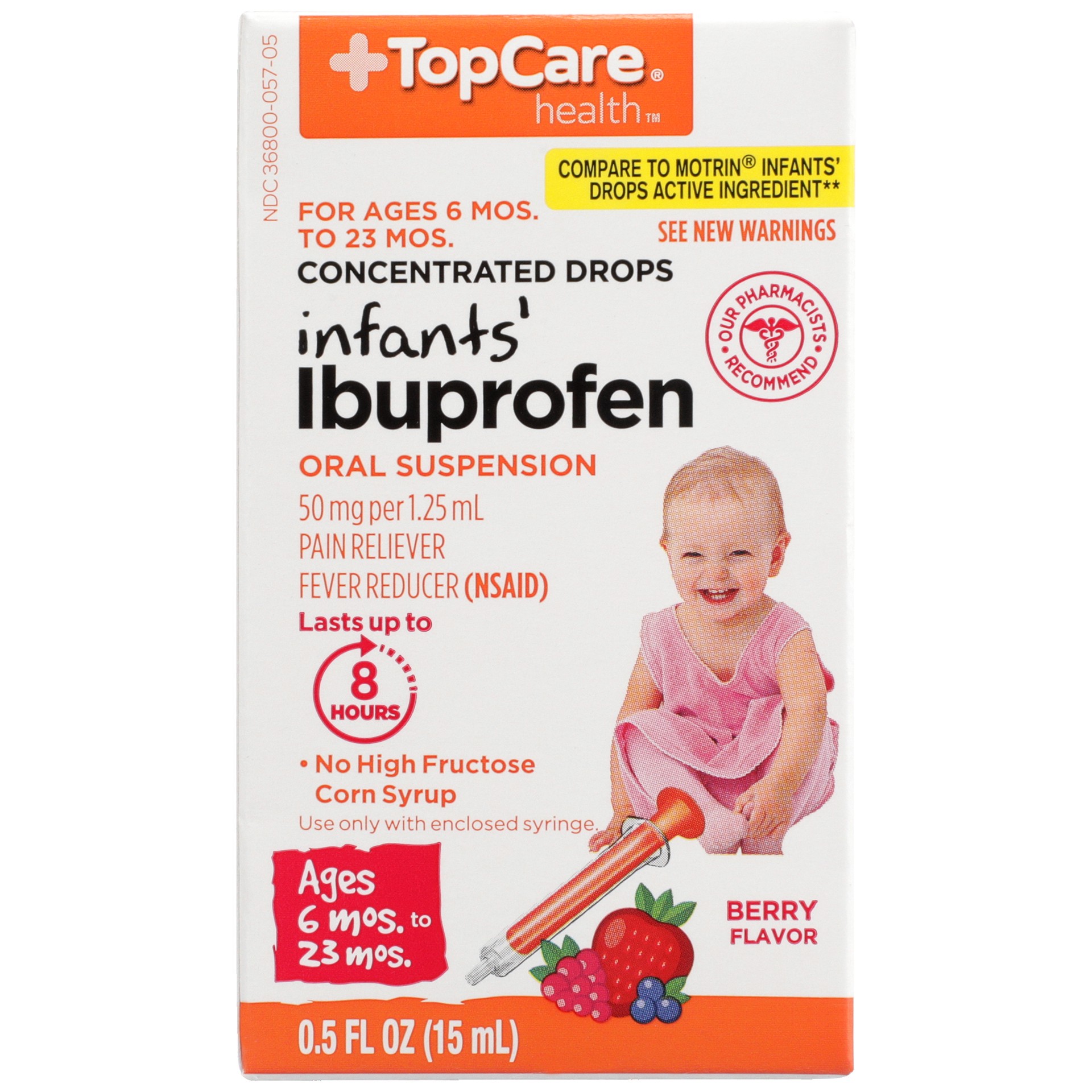 In Each 1.25 ml: Active Ingredients: *Ibuprofen (NSAID) (50 mg), Pain Reliever/Fever Reducer. Inactive Ingredients: Anhydrous Citric Acid, FD&C Red 40, Glycerin, Hypromellose, Natural and Artificial B…