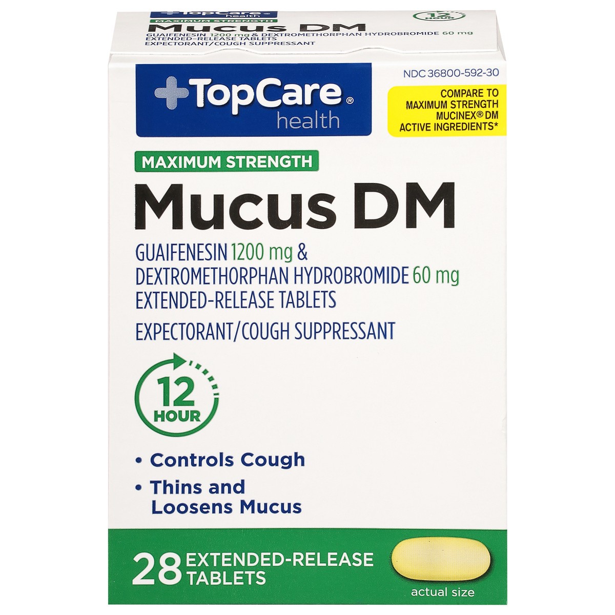 Guaifenesin 1200 mg & dextromethorphan hydrobromide 60 mg extended-release tablets. Expectorant/cough suppressant. Gluten free. Compare to Maximum Strength Mucinex DM Active Ingredients (This product …