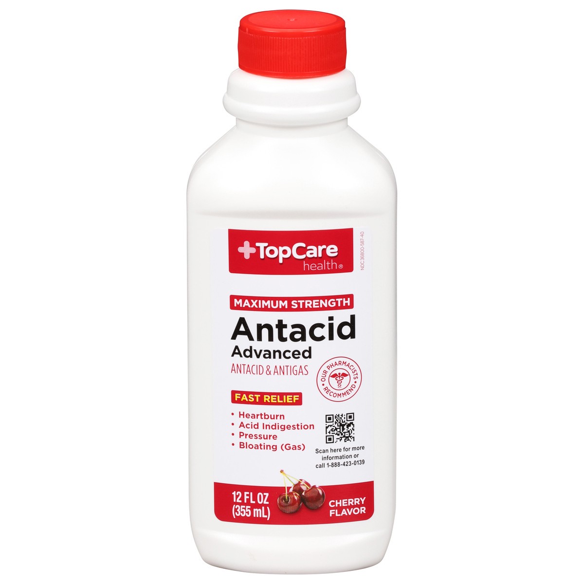 TopCare Antacid Advanced Maximum Strength is for fast relief of: acid indigestion, heartburn, sour stomach, upset stomach associated with these symptoms, pressure and bloating commonly referred to as …