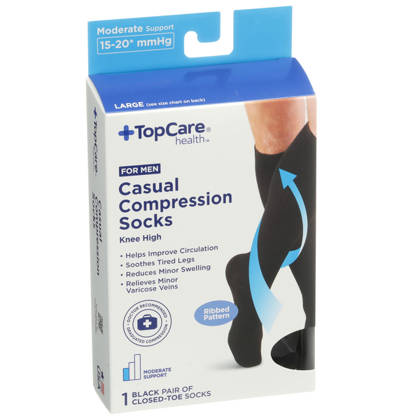 slide 1 of 1, Topcare Health Men Casual Compression Socks Knee High, Large, Black Ribbed Pattern, 1 pair