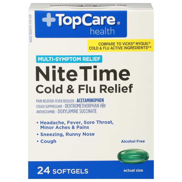 slide 2 of 6, TopCare Health Multi-Symptom Relief NiteTime Cold & Flu Relief 24 Softgels, 24 ct