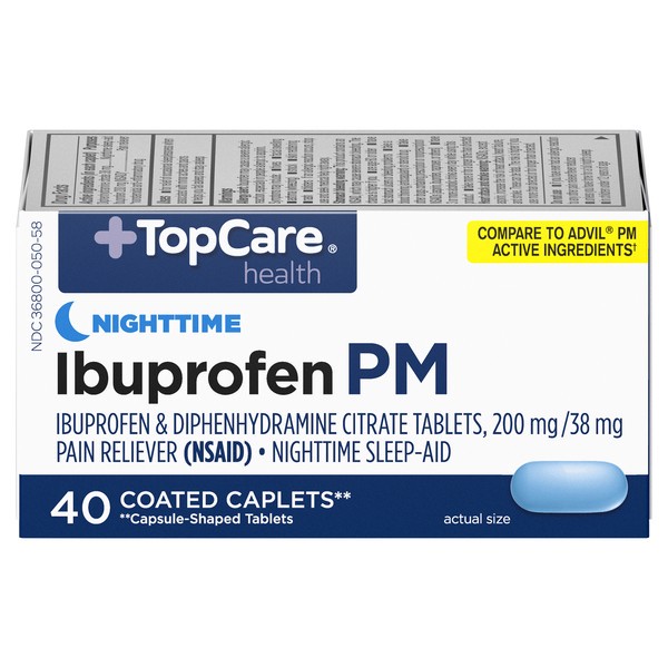 In Each Caplet: Active Ingredients: Diphenhydramine Citrate (38 mg), Nighttime Sleep-Aid; *Ibuprofen (NSAID) (200 mg), Pain Reliever. Inactive Ingredients: Colloidal Silicon Dioxide, Croscarmellose So…