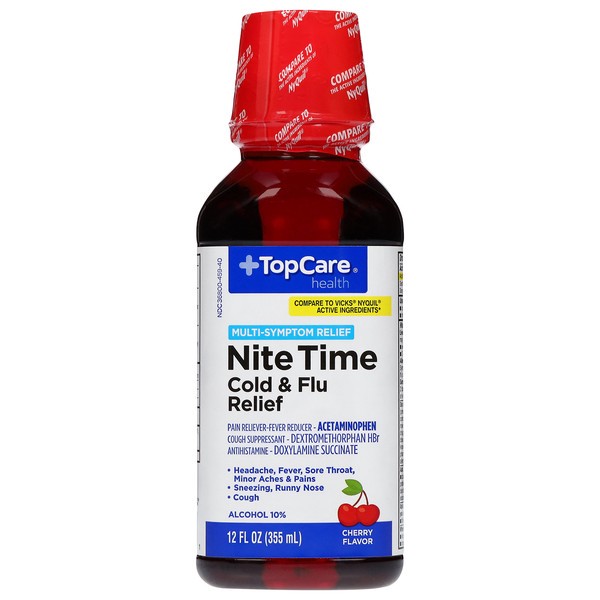 In Each 30 ml: Active Ingredients: Acetaminophen (650 mg), Pain Reliever/Fever Reducer; Dextromethorphan HBr (30 mg), Cough Suppressant; Doxylamine Succinate (12.5 mg), Antihistamine. Inactive Ingrediā¦