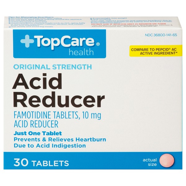(In Each Tablet): Active Ingredients: Famotidine (10 mg), Acid Reducer. Inactive Ingredients: Carnauba Wax, Hypromellose, Iron Oxide Red, Iron Oxide Yellow, Magnesium Stearate, Microcrystalline Cellul…