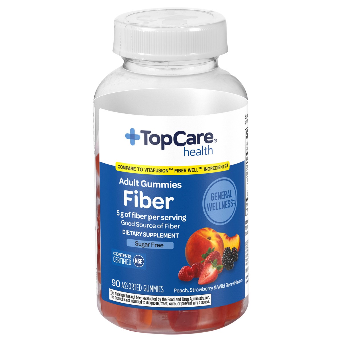slide 8 of 9, TopCare Health Peach, Strawberry & Wild Berry Flavors Fiber 90 Adult Gummies, 90 ct