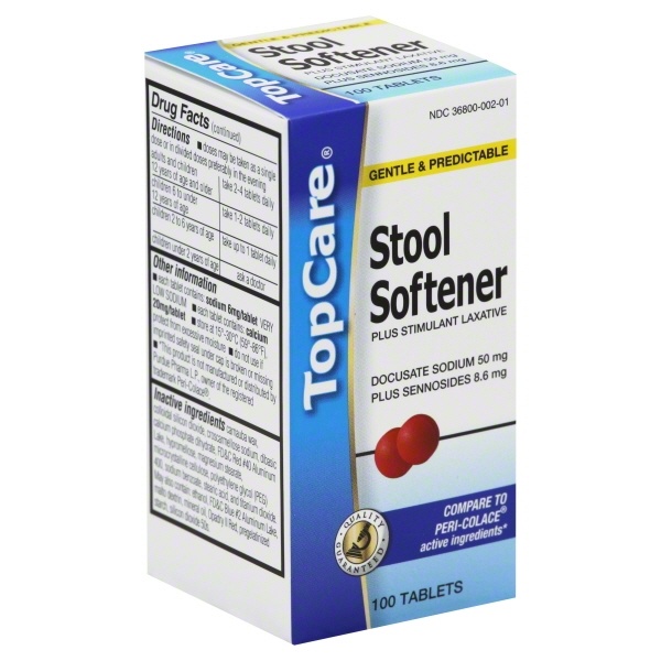 In Each Tablet Active Ingredients: Docusate Sodium (50 mg), Stool softener.; Sennosides (8.6 mg), Stimulant laxative. Inactive Ingredients: Colloidal Silicon Dioxide, Croscarmellose Sodium, Dibasic Ca…