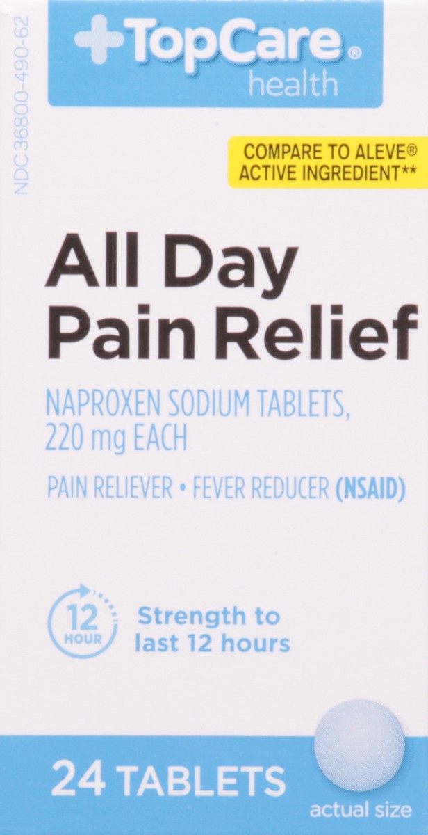 In Each Tablet Active Ingredients: *Naproxen Sodium (Naproxen 200 mg) (NSAID) (220 mg), Pain Reliever/Fever Reducer. Inactive Ingredients: FD&C Blue 2 Aluminum Lake, Hypromellose, Magnesium Stearate, …