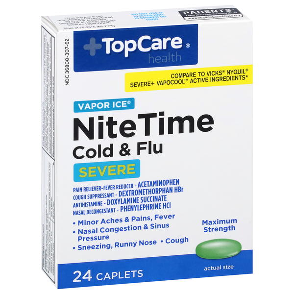 Vapor Ice, Maximum Strength Nitetime Cold & Flu Severe Pain Reliever-fever Reducer, Cough Suppressant, Antihistamine, Nasal Decongestant Caplets