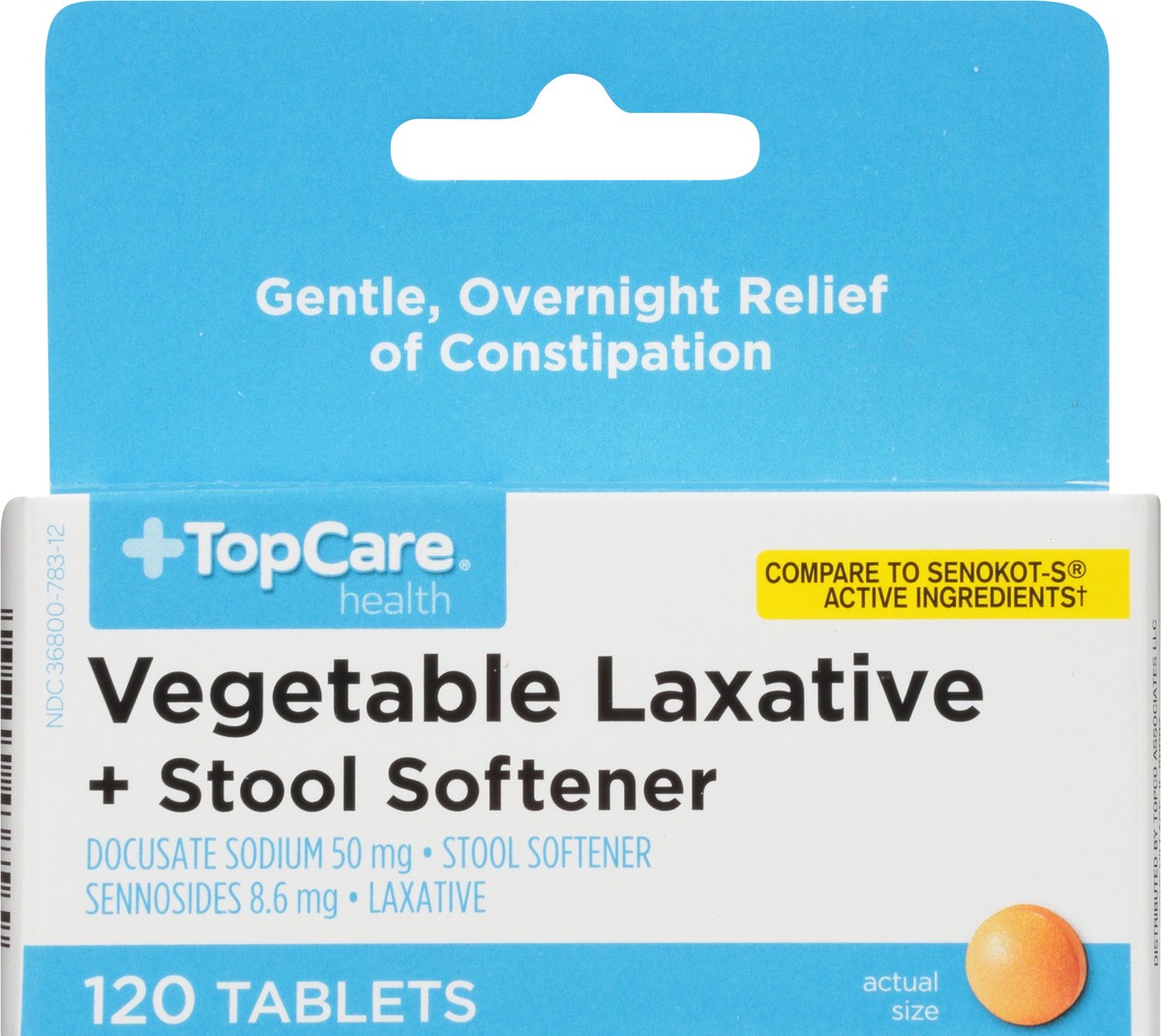 In Each Tablet: Active Ingredients: Docusate Sodium (50 mg), Stool Softener; Sennosides (8.6 mg), Laxative. Inactive Ingredients: Croscarmellose Sodium, Dibasic Calcium Phosphate Dihydrate, FD&C Yello…