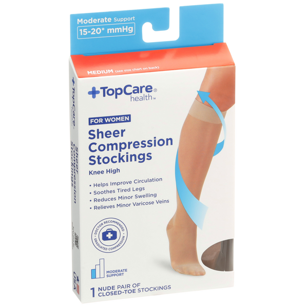 slide 1 of 1, Topcare Health Women Medium Sheer Compression Stockings Knee High, Nude, Moderate Support, 1 pair