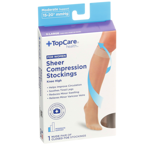 slide 1 of 1, Topcare Health Women X-Large Sheer Compression Stockings Knee High, Nude, 1 pair