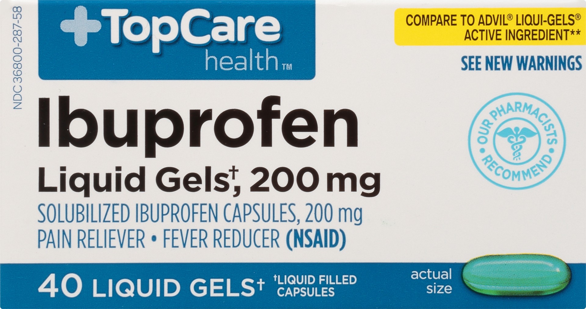 In Each Capsule: Active Ingredients: *Solubilized Ibuprofen Equal to 200 mg Ibuprofen (NSAID) (Present as the Free Acid and Potassium Salt), Pain Reliever/Fever Reducer. Inactive Ingredients: FD&C Blu…