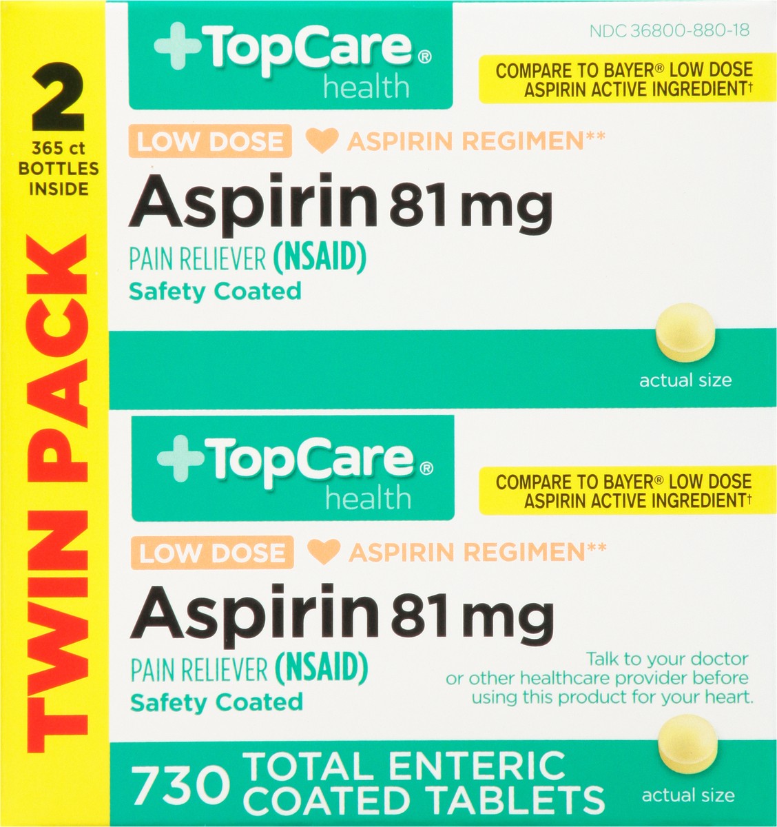 In Each Tablet: Active Ingredients: *Aspirin (NSAID) (81 mg), Pain Reliever. Inactive Ingredients: Anhydrous Lactose, Carnauba Wax, Colloidal Silicon Dioxide, Croscarmellose Sodium, D&C Yellow 10 Alum…