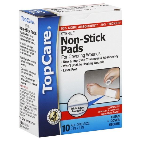 slide 1 of 1, TopCare Non Stick Pads For Covering Wounds, 10 ct