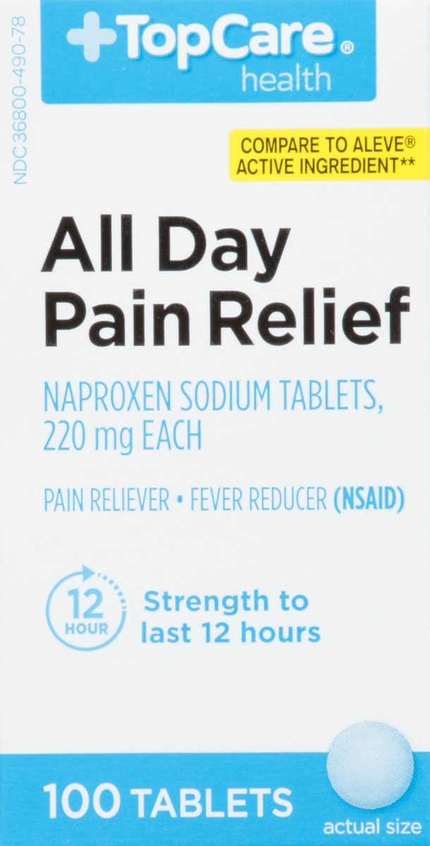 In Each Tablet: Active Ingredients: *Naproxen Sodium (Naproxen 200 mg) (NSAID) (220 mg), Pain Reliever/Fever Reducer. Inactive Ingredients: FD&C Blue 2 Aluminum Lake, Hypromellose, Magnesium Stearate,…