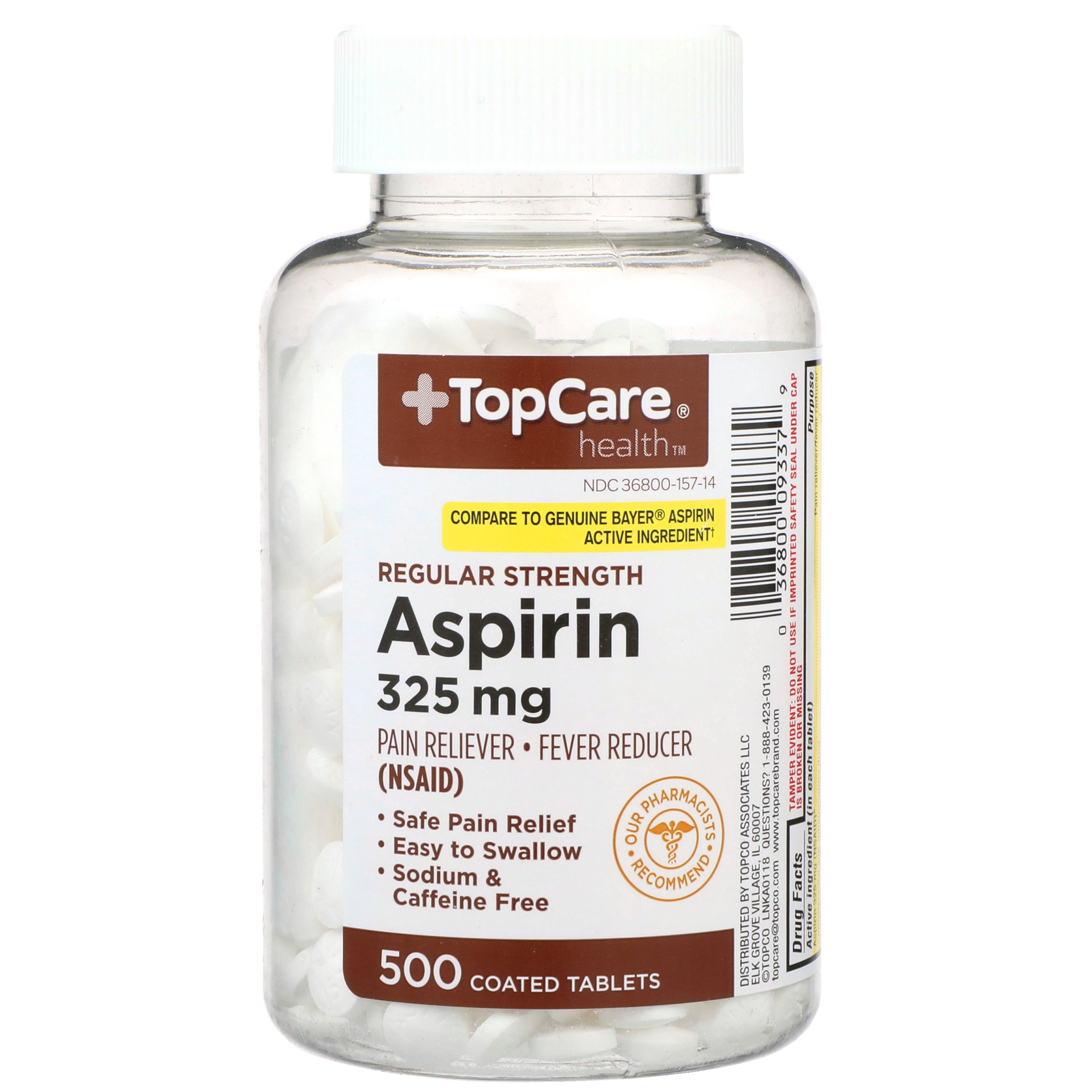 In Each Tablet: Active Ingredients: Aspirin (NSAID) (325 mg), Pain Reliver/Fever Reducer. Inactive Ingredients: Corn Starch, Hypromellose, Polyethylene Glycol, Propylene Glycol. *nonsteroidal anti-inf…