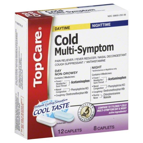 In Each Day Caplet: Active Ingredients: Acetaminophen (325 mg), Pain Reliever/Fever Reducer; Dextromethorphan HBr (10 mg), Cough Suppressant; Phenylephrine HCl (5 mg), Nasal Decongestant. Inactive Ing…