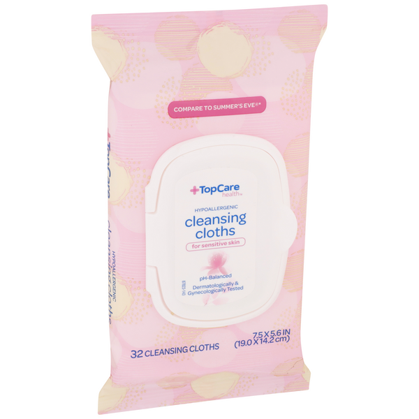 slide 1 of 1, TopCare Top Care Topcare Hypoallergenic Cleansing Cloths For Sensitive Skin, 32 ct