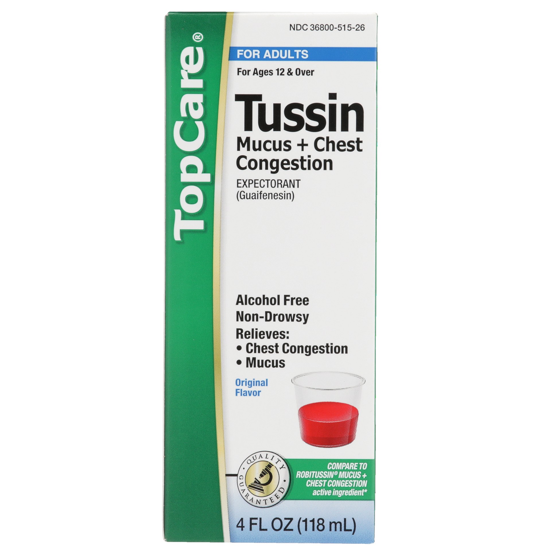 In Each 10 mL: Active Ingredients: Guaifenesin, USP (200 mg), Expectorant. Inactive Ingredients: Anhydrous Citric Acid, Caramel, FD&C Red 40, Flavor, Glycerin, High Fructose Corn Syrup, Menthol, Propy…